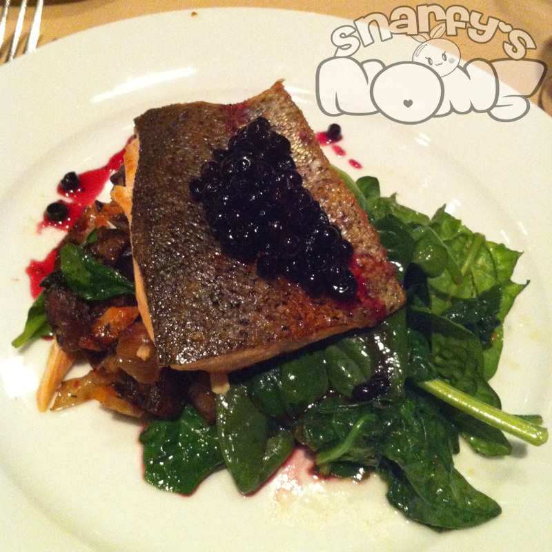 Rehearsal Dinner: Trout with blackberry compote, sweet potatoes and spinach. Revival Bar and Kitchen