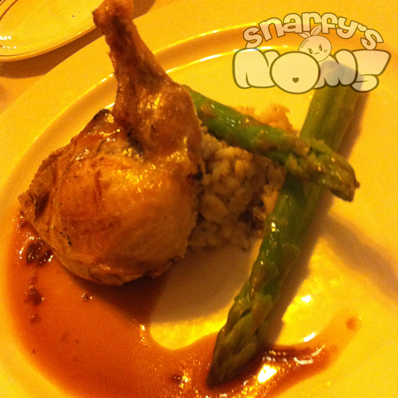 Wedding Day: Chicken with risotto and asparagus spears. It was delicious, but the portion size was a little too cute if you catch my drift.