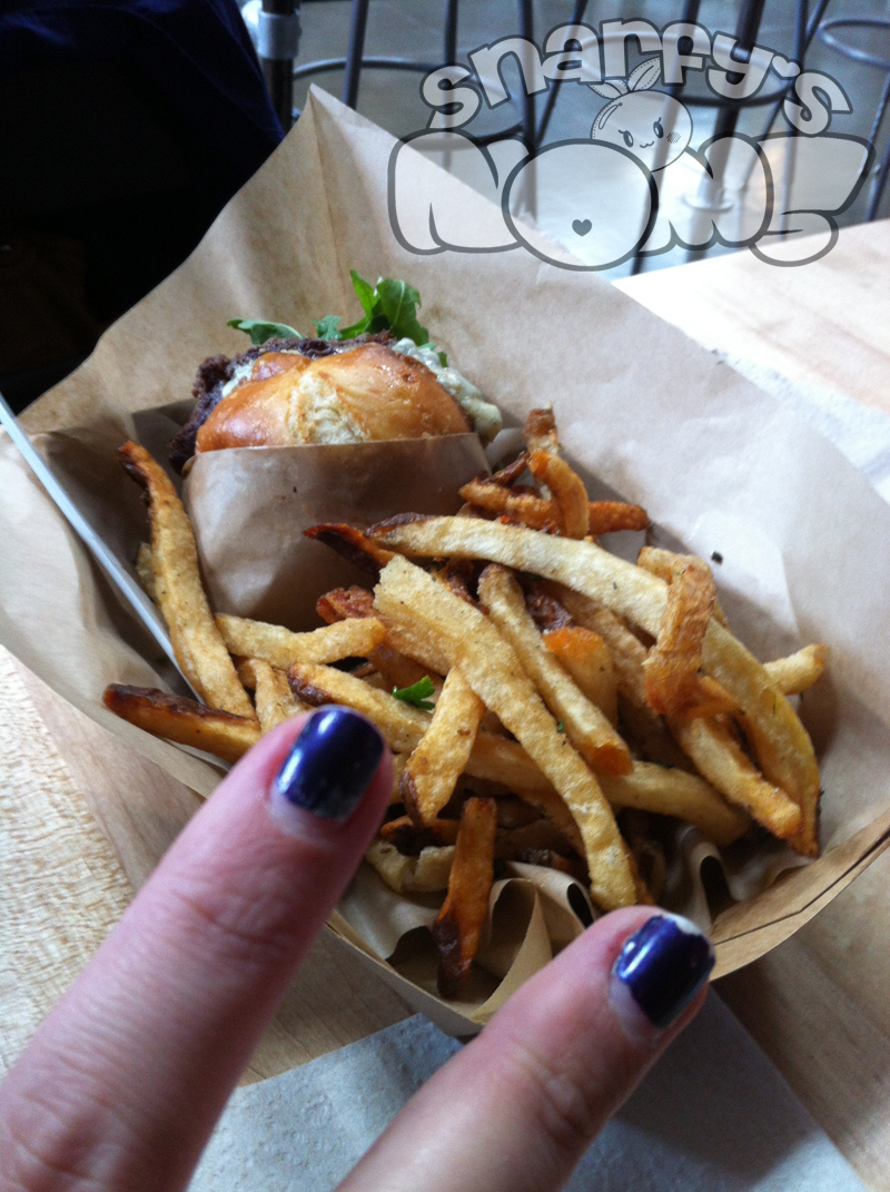 After years of knowing about Skillet’s existence, I *finally* got to try a Skillet burger at the Armory in Seattle Center. Of course, I got it without that tempting soft delicious bun and I got a salad instead of fries. I know, I know, should have just bit the bullet and gone with bun and fries, but the image below is totally the version you should order.